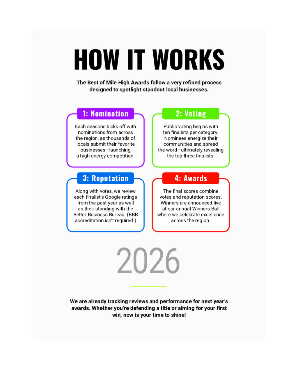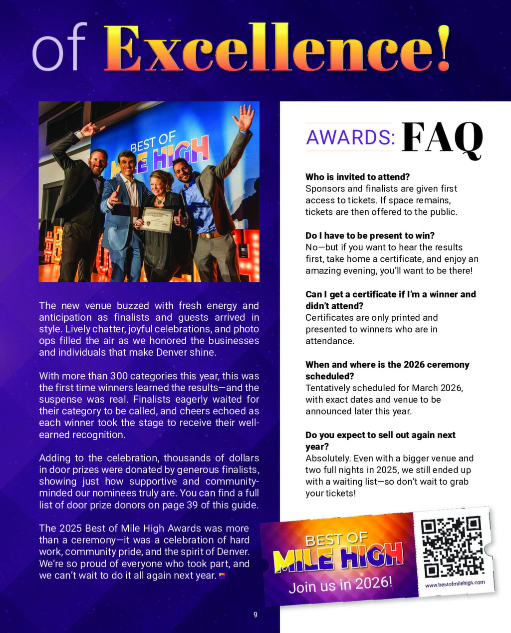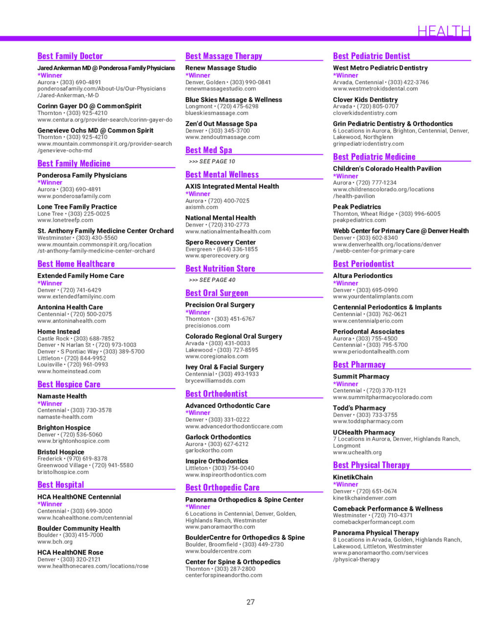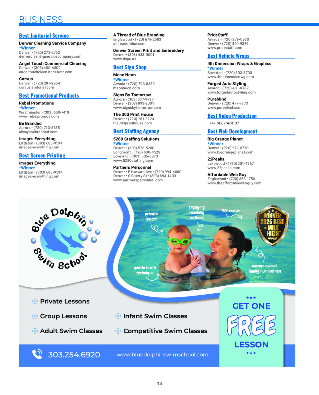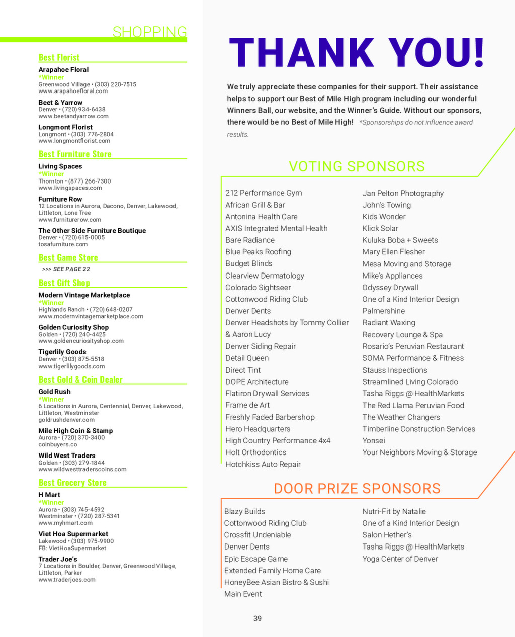 We publish an annual Best of Mile High Magazine and distribute it to businesses and affluent neighborhoods across the Denver Metro area. Click the image below to see a digital version of our 2025 magazine.