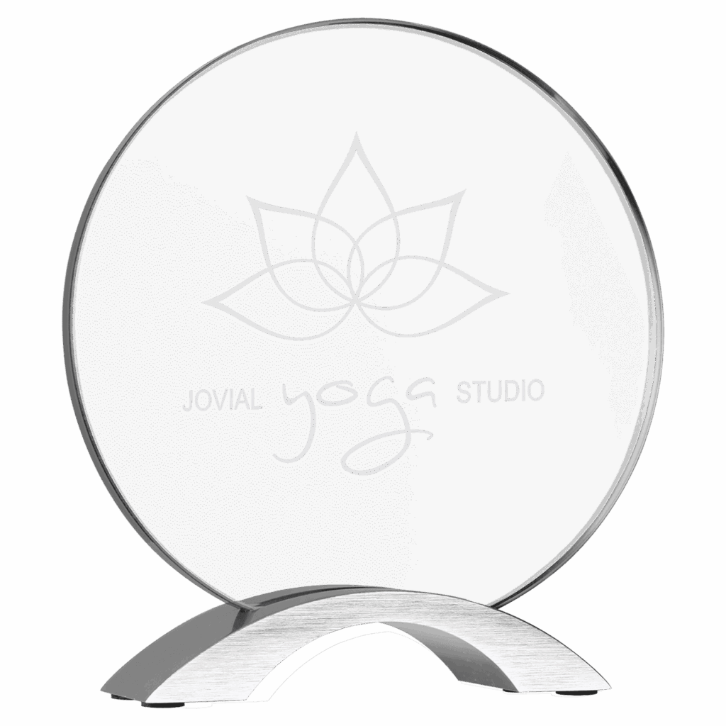 Show off your big win with a one-of-a-kind plaque engraved with your company name, category, and award. Materials include a black acrylic face and a wood base.